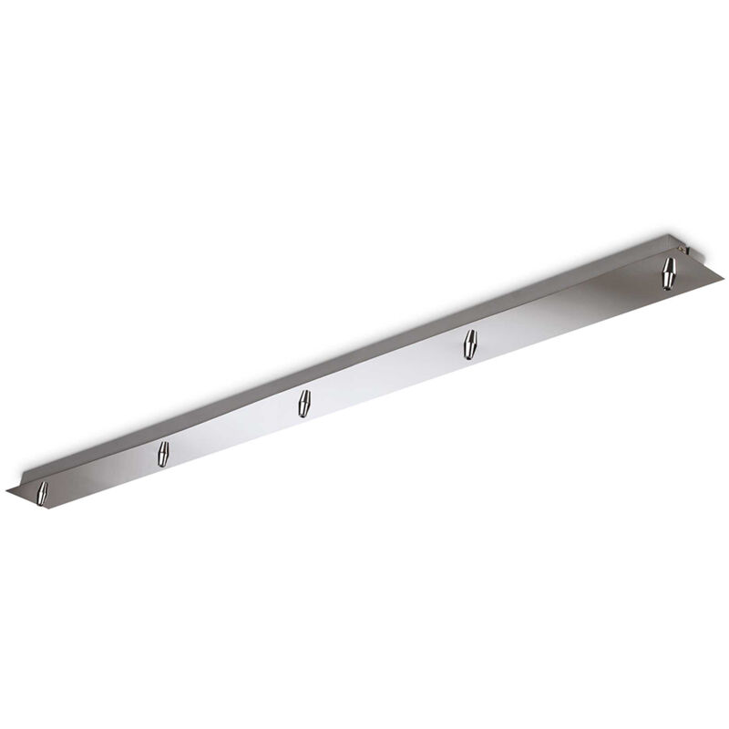 Collezione Rosone ACCESSORI - ROSONI Base rettangolare cromo con 5 fori che permette di ampliare un solo punto luce per cinque voltee creare un piccolo lampadario. . La base viene fissata al soffitto con tasselli o autofilettanti tramite una staffa. Disponibile in diverse finiture.