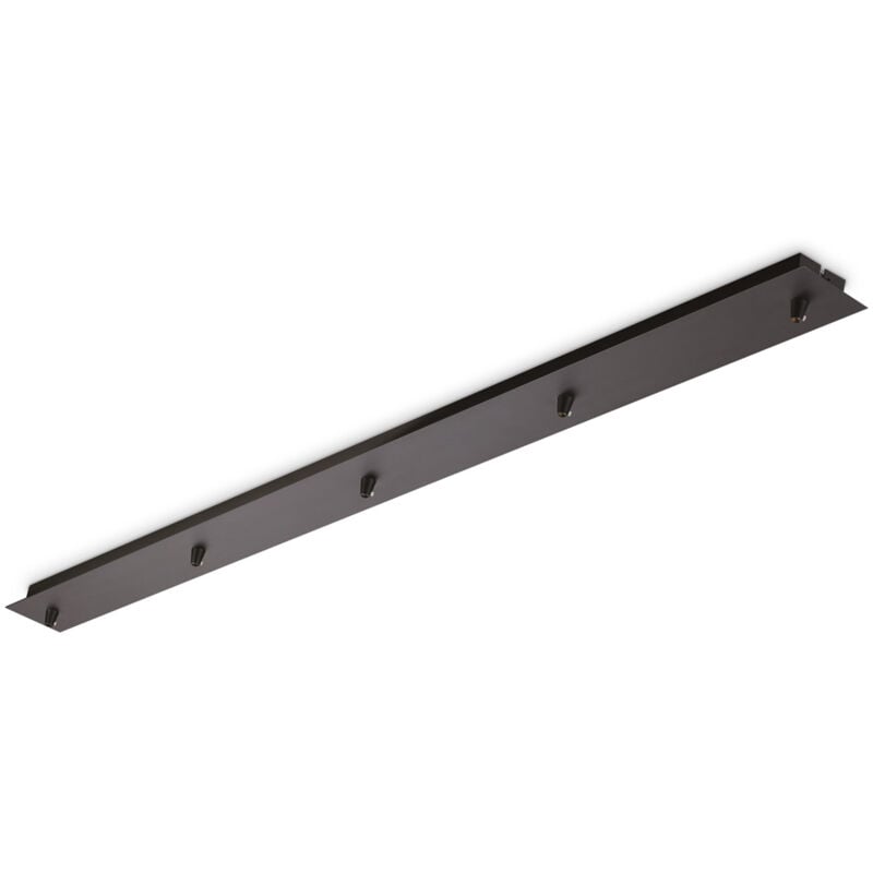 Collezione Rosone ACCESSORI - ROSONI Base rettangolare nera con 5 fori che permette di ampliare un solo punto luce per cinque voltee creare un piccolo lampadario.. La base viene fissata al soffitto con tasselli o autofilettanti tramite una staffa. Disponibile in diverse finiture.
