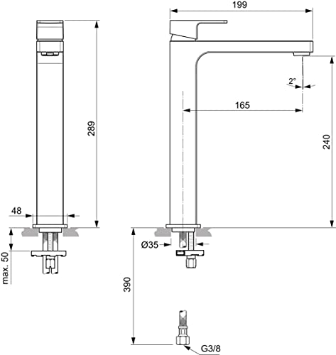 Tubi flessibili con attacco G3/8”. Senza asta di comando e scarico piletta.
