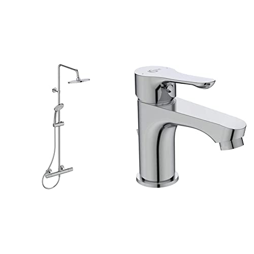 Ideal Standard A7208AA Ceratherm t25 Colonna doccia con miscelatore termostatico esterno, cromo & BC647AA Alpha Miscelatore lavabo, con piletta in metallo, cromato