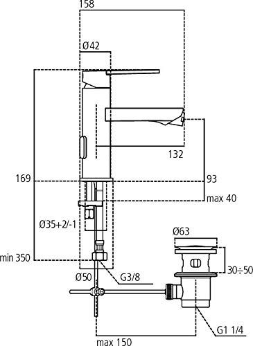 Miscelatore monocomando bidetcon aeratore orientabile M21,5x1 con portata massima 5 l/min, asta di comando scarico e piletta in metallo da 1-1/4”