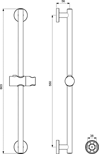 Ideal Standard B9420AA IDEALRAIN, cromato, Asta murale da 600 mm per doccetta M1/M3