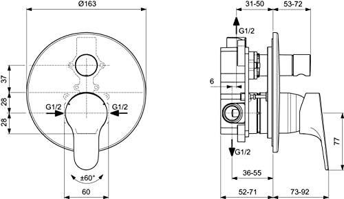 Ideal Standard - Cerabase, Miscelatore monocomando per vasca o doccia ad incasso, Due vie, Kit completo di corpo incasso, Cromato