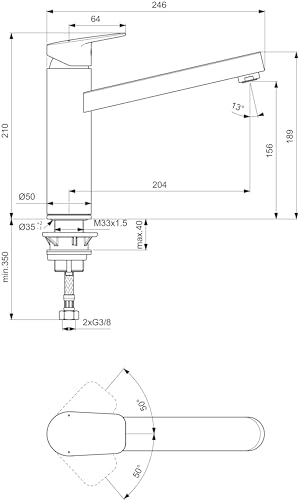 Ideal Standard - Ceraplan, Miscelatore monocomando per lavello da cucina, Bocca media tubolare orientabile, Cromato