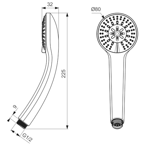 Doccetta Diam. 80mm, 3 funzioni (effetto pioggia, pioggia tropicale, massaggio)