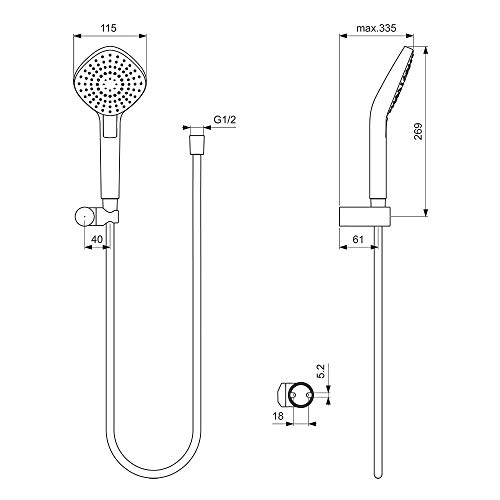 Ideal Standard - Idealrain, Set doccetta per vasca o doccia, Kit 3 pezzi per doccia, Cromato