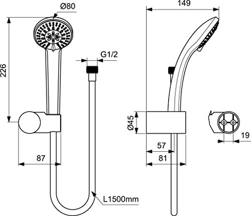 Ideal Standard - Idealrain, Set doccetta per vasca o doccia, Kit 3 pezzi per doccia, Cromato
