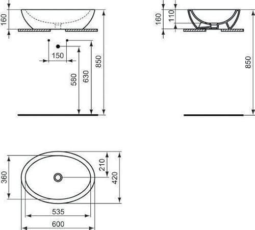 Ideal Standard K078401 Lavabo da appoggio STRADA O, Bianco