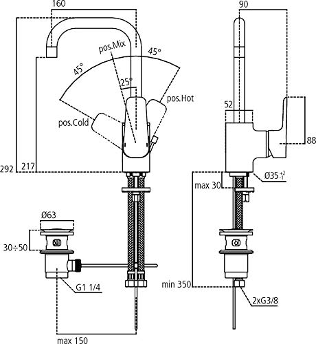 Miscelatore monocomando per lavabo con bocca di erogazione (alta) tubolare orientabile ed aeratore nascosto m16,5x1