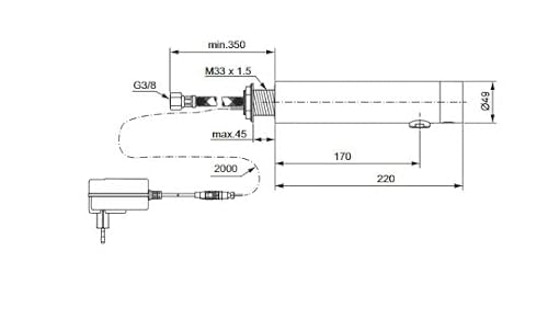 Bocca di erogazione: sporgenza 170mm, Diametro corpo 49mm