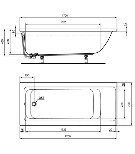 Ideal Standard - IDEAL STANDARD serie Connect Air vasca normale rettangolare - 170x70, A magazzino, Da incasso solo guscio