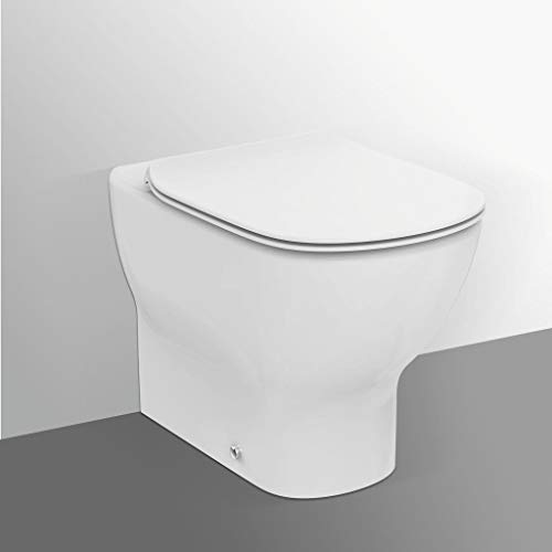 Ideal Standard - Tesi, WC a terra filo parete universale Aquablade, Copriwater sottile con chiusura normale, Bianco