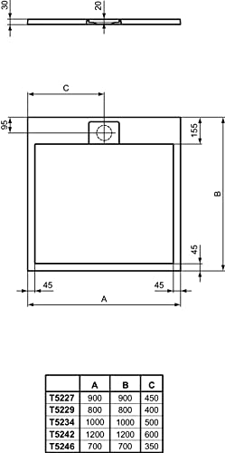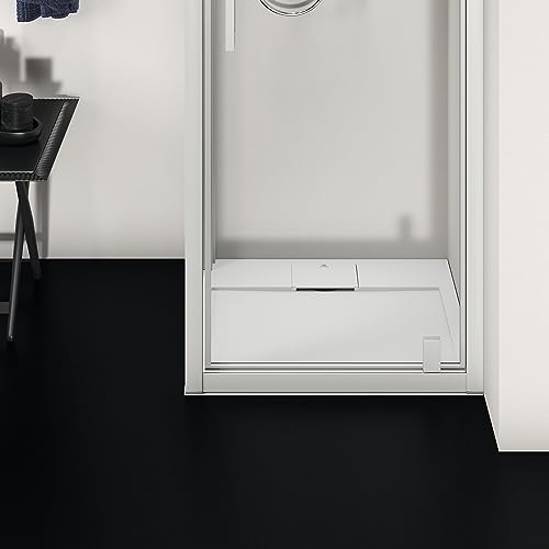 Ideal Standard - Ultra Flat S i.life, Piatto doccia quadrato 70x70 in resina, Piletta con scarico nascosto, Finitura opaca effetto pietra, Bianco