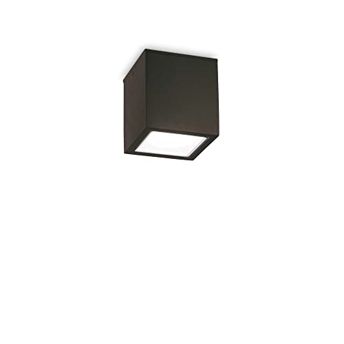 Ideal Lux Techo PL1 Small, lampada da soffitto plafoniera a forma cubica, per esterno. Corpo in alluminio pressofuso, diffusore in vetro temperato trasparente. Disponibile in 4 finiture diverse.