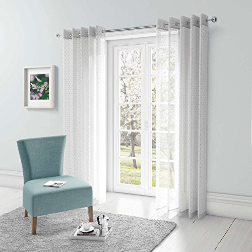 Ideal Textiles - Tende con occhielli e stampa Voile, pronte all'uso, con dettagli metallici brillanti, colore: bianco, argento, Poliestere, White, 145 x 137 cm