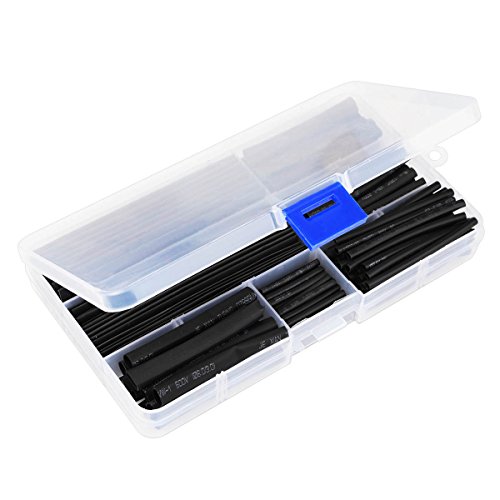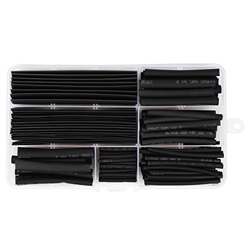 Idealeben - 150 guaine isolanti termorestringenti per cavi elettrici, con scatola di plastica, colore nero