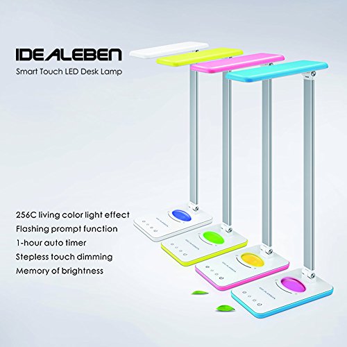 IDEALEBEN - Lampada LED da Tavolo con 7 livelli sfumature di luminosita'/ con luce notturna Multicolori di Arcobaleno/Controllo pannello a tocco/Timer Auto-Off 1 ora/Color Azzurro