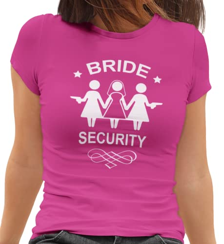 IDEAMAGLIETTA AN0003 Maglietta Addio al Nubilato: Bride Security Sposa, t-Shirt Idea Regalo Divertente Ironica (S, Fucsia)