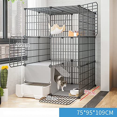 IDEAX Gabbia per Gatti, Casetta Gatto Cuccia per Gatti Pet Play Playpen Gabbie per Animali Domestici per Gatti Recinzione in Metallo con Lettiera A Cassetto (Color: Black-C, Size: 75 * 95 * 109CM)