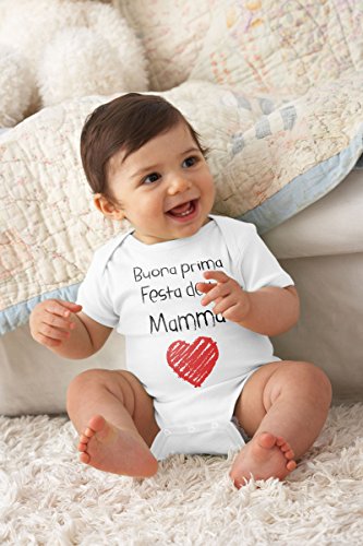 Idee Regalo - Buona Prima Festa della Mamma, Body Neonato Manica Corta 0-3 Mesi Bianco