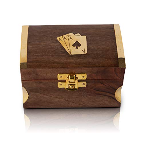 Idee regalo di compleanno uniche fatte a mano classico legno porta carte da gioco Deck Box Storage Case Organizer con 2 set di carte da gioco "Ace" di alta qualità regali di inaugurazione della casa