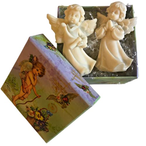 Idee Regalo Per Lui Per Lei - Scatola Quadrata Angeli 9x9x5cm + 2 Statuette Angeli Resina + Omaggio Calamita Da Frigo - (9 cm)
