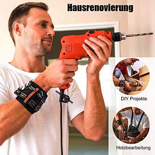 15 magneti più forti potenziati non cadono: 15 magneti più forti nel bracciale magnetico Hanpure per viti sono molto più potenti rispetto ad altri braccialetti magnetici simili di altre marche. Il magnete da polso circonda quasi tutto il polso per tenere viti, chiodi, bulloni, martelli, trapani, elementi di fissaggio, perni, chiavi e rondelle. Perfetto per fai da te, strumenti di falegnameria, costruzione, riparazione auto, cucito, lavorazione del legno e altri progetti fai da te.