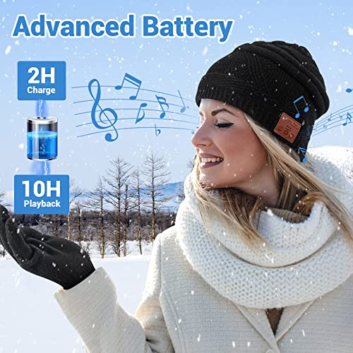 Idee Regalo Uomo Cappello Bluetooth Regali Natale Originali Surround Stereo Musica Cappello con Cuffie Bluetooth e Guanti Berretto Bluetooth Idea Regali Per Papà Mamma Donna, Nero, Taglia Unica