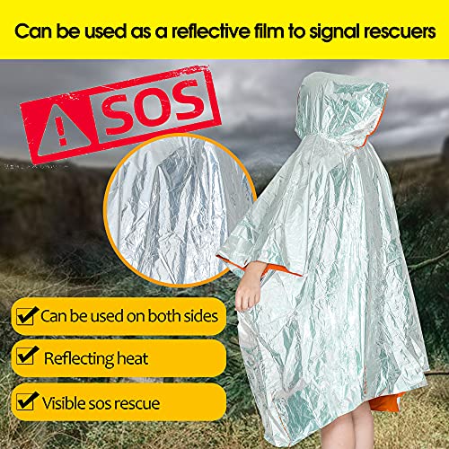 Idefair 2 pezzi poncho coperta di emergenza, poncho pioggia di sopravvivenza di emergenza impermeabile leggero riflettente al calore per attività all'aperto campeggio escursionismo