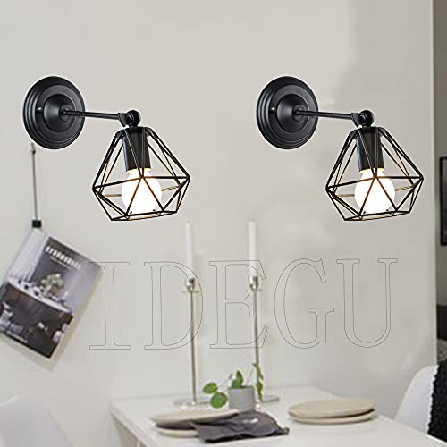 IDEGU set di 2 Applique da parete industriale, regolabile lampade da parete in metallo stile vintage E27 lampada a muro interna illuminazione per soggiorno, corridoio, scale, cucina, Ø 16 cm