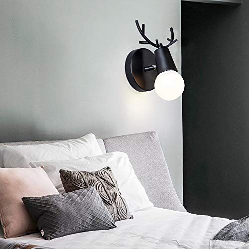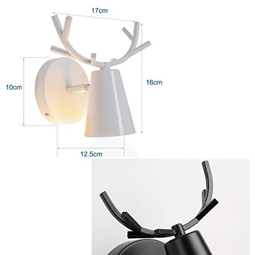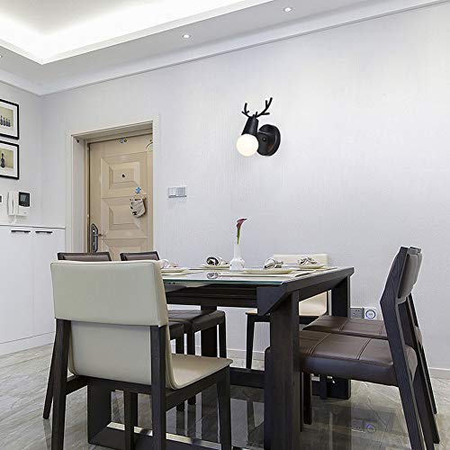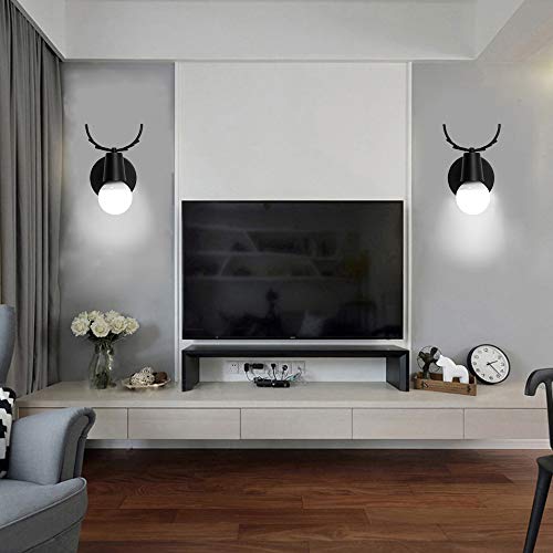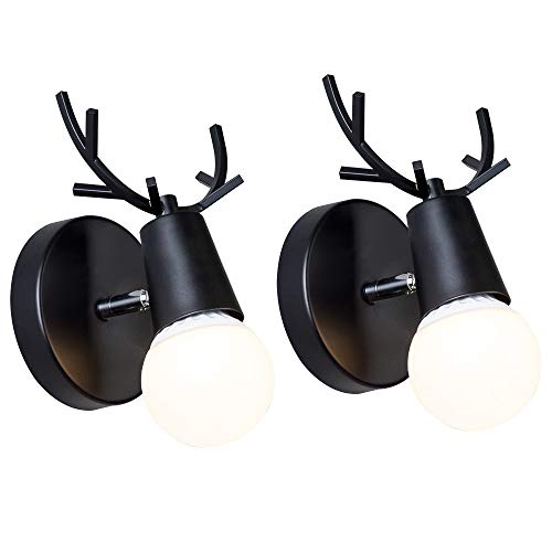 IDEGU - Set di 2 applique da parete moderna per interni con decorazione di legno di cervo, lampada da parete in metallo, per camera da letto, soggiorno, scale, corridoio, bagno, colore: Nero