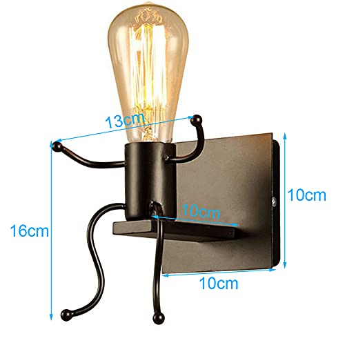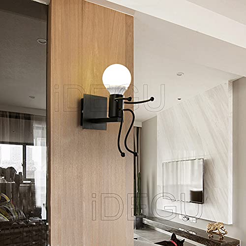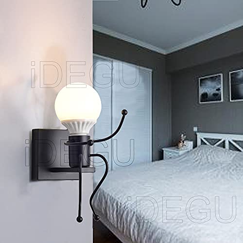 IDEGU - Lampada da parete moderna stile umanooide creativo, decorazione per interni, per camera dei bambini, soggiorno, corridoio, colore: Nero
