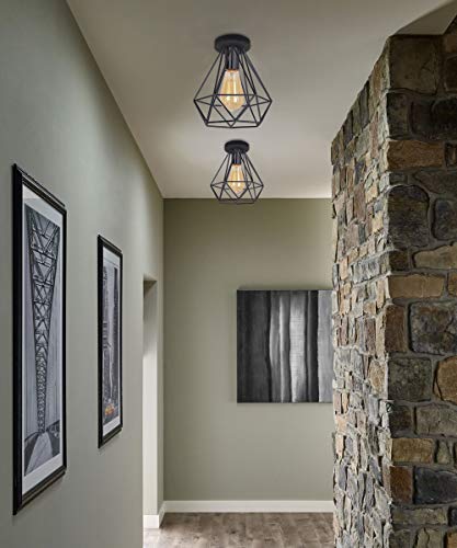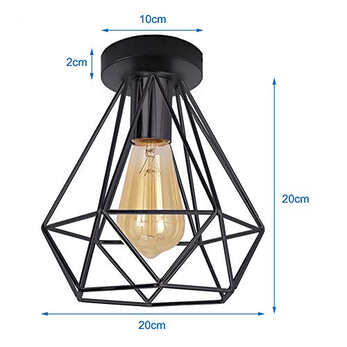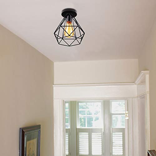 IDEGU Lampada da Soffitto Industriale Nera con Gabbia Vintage E27 Lampadario in Metallo Plafoniera Retrò per Balcone Corridoio Bagno Ingresso Cucina