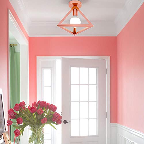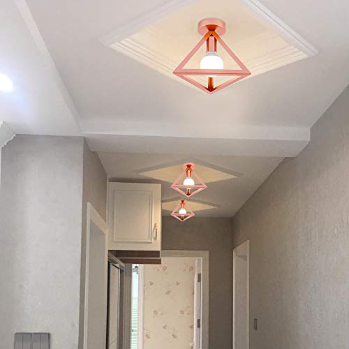 IDEGU Lampada da Soffitto Moderna a Forma di Gabbia Triangolo Geometrico Plafoniera Vintage E27 illuminazione per Camera da Letto, Soggiorno, Ristorante, 25cm, Oro Rosa