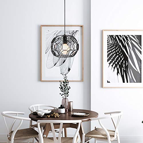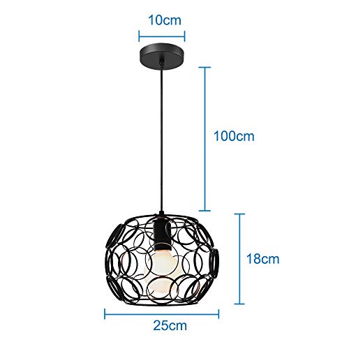 IDEGU Lampadario a Sospensione Moderno, E27 Lampade a Sospensione a Forma di Gabbia in Metallo, Lampada da Soffitto per Camera da Letto, Soggiorno, Cucina, Sala da Pranzo, Bar, 25 cm, Nero