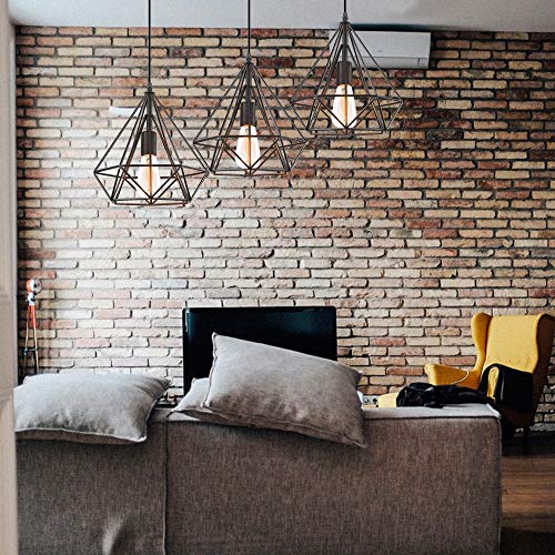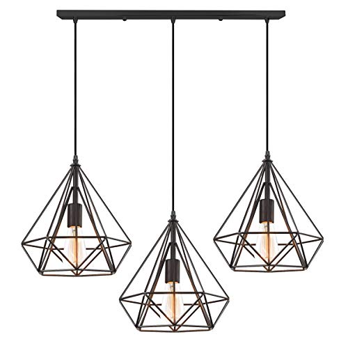 IDEGU - Lampadario a sospensione, stile industriale, a forma di diamante, in metallo, per soggiorno, sala da pranzo, cucina, 25 cm, colore: Nero