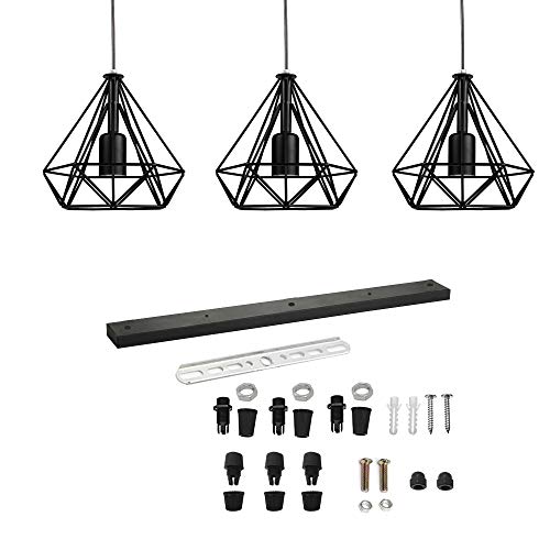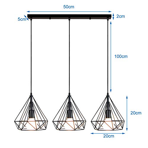 IDEGU Lampadario a sospensione stile vintage industriale design geometrico forma a gabbia con diamante lampada a sospensione E27 plafoniera da cucina, 20 cm, Nero