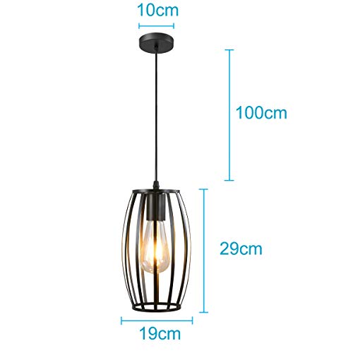 IDEGU Lampadario a sospensione vintage, lampada in stile geometrico in forma di gabbia in metallo, lampada a sospensione per camera da letto, soggiorno, sala da pranzo, cucina - nero
