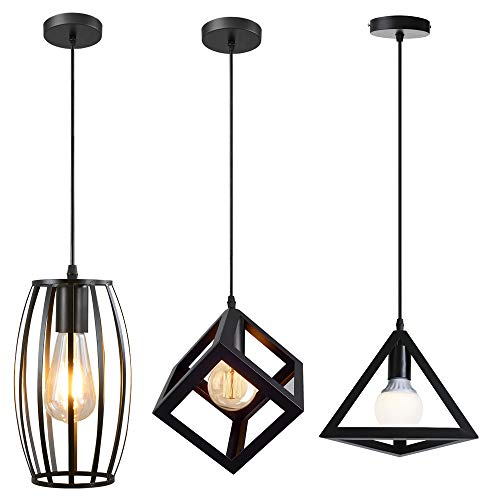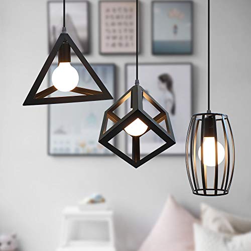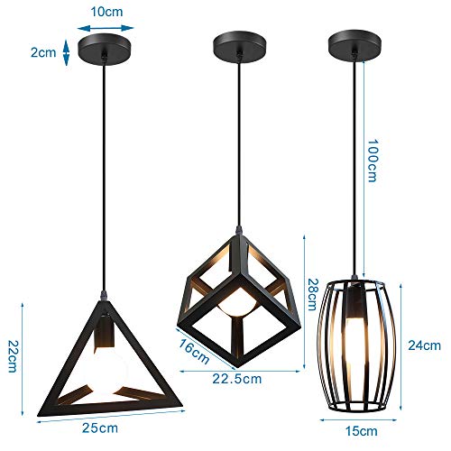 IDEGU 3 Lampade A Sospensione Apparecchio Design Geometrico Moderno E27 Lampadario a Sospensione Paralume in Metallo Soffitto per Camera Soggiorno (Nero-3 Lampade)