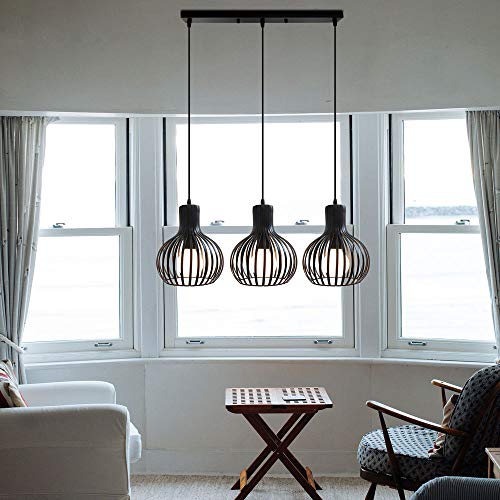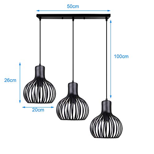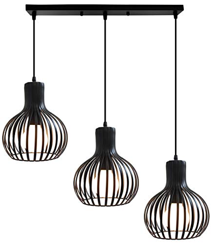 IDEGU 3 Lampade a Sospensione Lampadario Moderno, Lampadario in Metallo a Forma di Gabbia a Vaso Lampada da Soffitto per Salotto Cucina Sala da Pranzo Ristorante - Diametro 20 cm, Nero (Barra)
