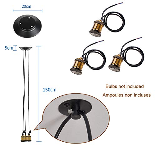 Lampada a sospensione e decorazione: questo lampadario con 3 cavi da 1,5 m, è possibile installarlo con altre decorazioni, come una barra di legno. I cavi sono regolabili, puoi progettare la tua illuminazione a tuo piacimento.