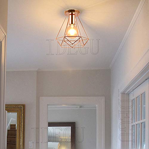 IDEGU 2 Pezzi Plafoniere E27 Vintage Lampada da Soffitto Design Industriale in Forma di Gabbia 20cm Paralume Matal Oro Rosa Retro Lampadario da Soffitto per Camera da Letto, Cucina, Corridoio