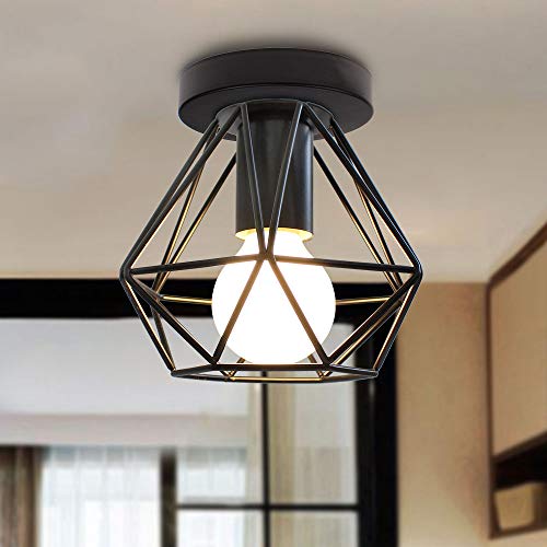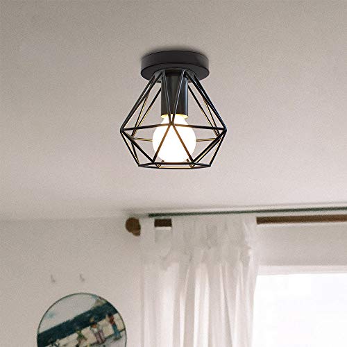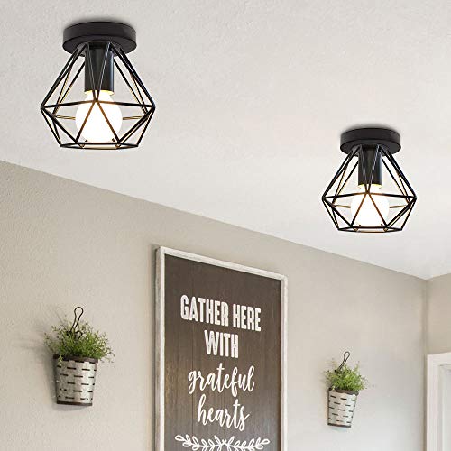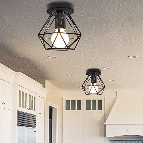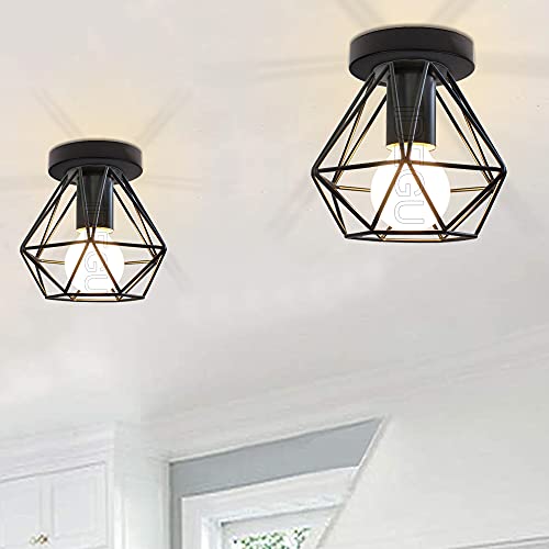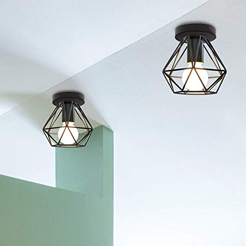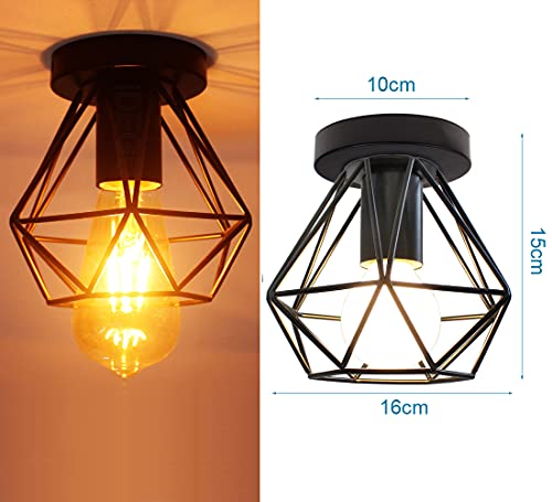 IDEGU 2 Pezzi Plafoniere E27 Vintage Lampada da Soffitto Design Industriale in Forma di Gabbia 16cm Paralume Matal Nero Retro Lampadario da Soffitto per Camera da Letto, Cucina, Corridoio