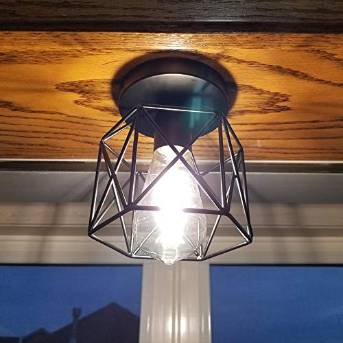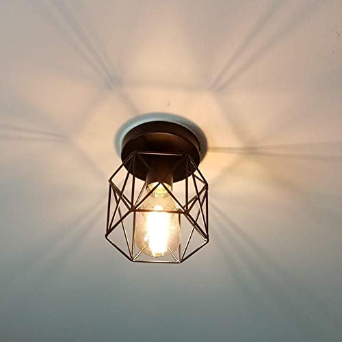 Plafoniera in stile retrò, motivo: gabbia, in ferro battuto, stile industriale Vintage, colore: nero.