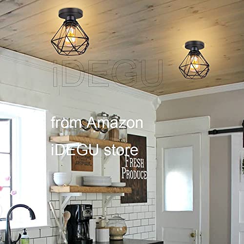 IDEGU Plafoniera LED E27 Vintage Lampada da Soffitto Design Industriale in Forma di Gabbia Diamante 16cm Paralume Matal Nero Retro Lampadario da Soffitto per Camera da Letto, Cucina, Corridoio