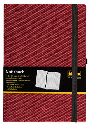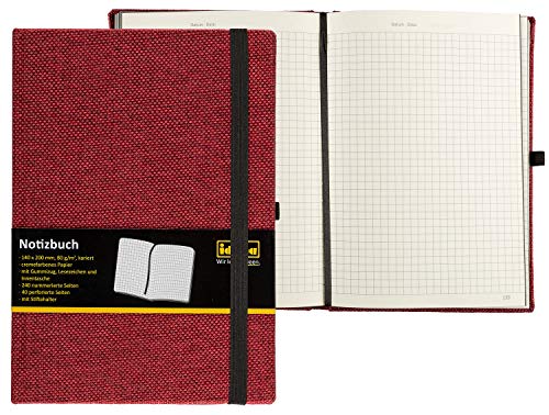 Idena 10505 - taccuino, 140 X 200 mm, a quadretti, Cover Tessile, 1 pezzi, bordeaux