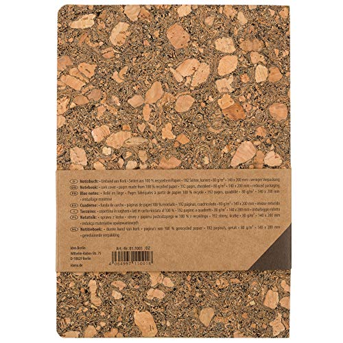 Idena 11001 - Quaderno 20 x 14 cm, quadrato, 192 pagine, in carta riciclata al 100%, copertina in sughero, 80g/m², 1 pezzo, marrone chiaro