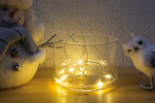 Catena luminosa decorativa con 10 LED di colore bianco caldo (temperatura di colore 2700k), lunghezza totale circa 2,4 m (di cui circa 1,5 m di cavo di alimentazione), adatta per uso interno