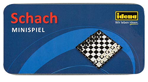 Idena 40110 Mini gioco di scacchi in pratica scatola di metallo per riporre e trasportare il campo di gioco e 32 personaggi degli scacchi, superficie di gioco circa 13 x 13 cm, multicolore