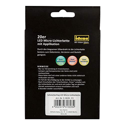Idena catena luminosa a LED con 20 piccole farfalla, Ferro, Multicolore, 125 x 1 x 1 cm